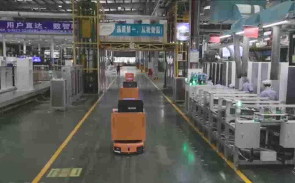 为车载冰箱物流配送打造的智能解决方案,,,包含产中物流通过潜伏举升AMR搬运至线边,,,产后成品物流智能仓储,,流程包含产中物流智能齐套入库,,线边安灯叫料AMR智能配送至线边,,,成品入库、、出库,,,通过无人堆高车机器人,,,智能仓储管理替代人工作业管理,,,,实现更高存储、、更高效率、、、、更具柔性化的解决方案。。